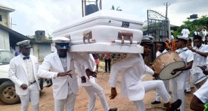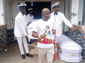 Her remains were released from City Gate Medical Services, Umuahia, and conveyed to her husband’s compound in a white Lincoln Escalade hearse belonging to Olive Funeral Services. The famous undertakers thrilled the crowd with dramatic pall-bearing displays before departure.