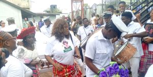 At Aro Ngwa Junction, thousands lined the route to welcome the Queen home, with cannon shots, royal chants, including the famous Ohafia War Dancers (Ikperikpe Ogu) and other colourful cultural troupes that put up spectacular performances.