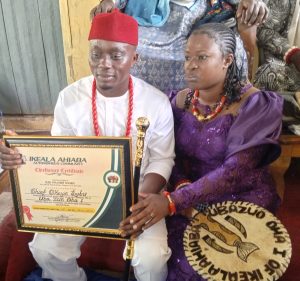 The handsome and fair-complexioned young man appreciated the traditional ruler of Ikeala Ahiaba Autonomous Community, HRH Eze Nnamdi Ahuwa Njoku for the honour done him in recognition of his integrity and enormous contributions to the development of the community.