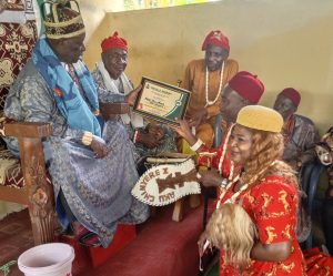 She said that it is not easy to come to a place that is not your village or state and be honoured emphasizing that for them to confer chieftaincy title on her husband shows that they love them so much.