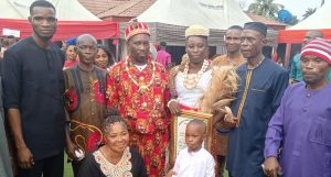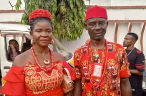 Eze Nwabiaraije Enogwe’s grand entrance into the arena with his wife, Ugoeze Rose Nwabiaraije, his children, relatives, in-laws, friends, well-wishers, traditional rulers and other notable personalities from far and near was greeted with deafening canon-shots and resounding applause.