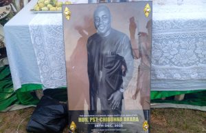 Speaking after the presentation of a Bible and a classy giant glass portrait to him by the executive of Ohuru Development Union (ODU) as well as decoration with a wrapper in recognition of his remarkable leadership of Ukwa East LGA and unwavering commitment to peace and development of Ohuru, the visibly elated Mayor of Ukwa East LGA, Hon. Pastor Chibunna Akara burst into songs of praise to God, repeatedly singing the popular Igbo gospel song “Ezi Chineke di Nma.”